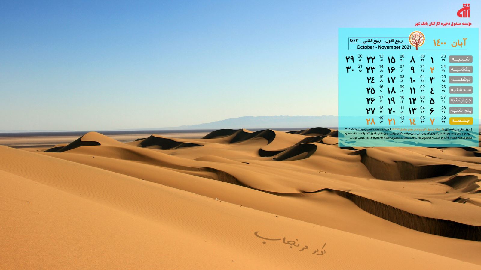 تصاویر پشت زمینه با طرح تقویم سال 1400 جهت استفاده اعضاء محترم صندوق ذخیره کارکنان بانک شهر